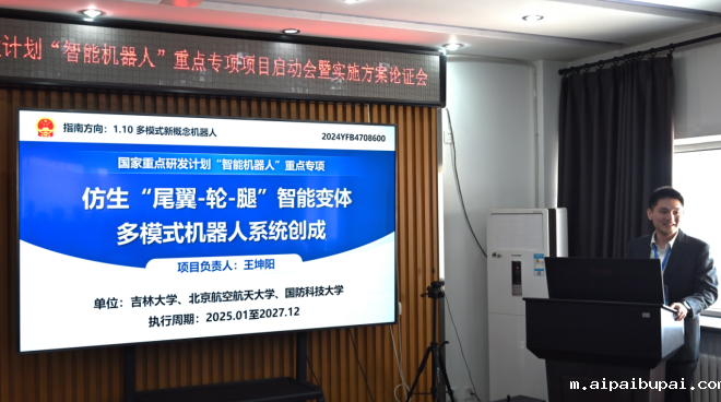 2025年4月24日,由我校牵头承担的两项国家重点研发计划“智能机器人”重点专项项目“仿生拉压体人形机器人设计制造理论与关键技术”和“仿生‘尾翼-轮-腿’智能变体多模式机器人系统创成”项目启动会在长春召开。工信部产业发展促进中心项目主管范玫杉,中国科学院沈阳自动化研究所刘连庆研究员、中兵智能创新研究院有限公司江磊研究员、南京航空航天大学李迎光教授、山东大学李贻斌教授、中国科学院自动化研究所侯增广研究员和哈尔滨工程大学秦洪德教授6位项目专家出席会议。我校科研院综合办公室主任孙铁民,我院副院长于征磊,工程仿生教育部重点实验室副主任钱志辉以及项目组成员参加了会议。